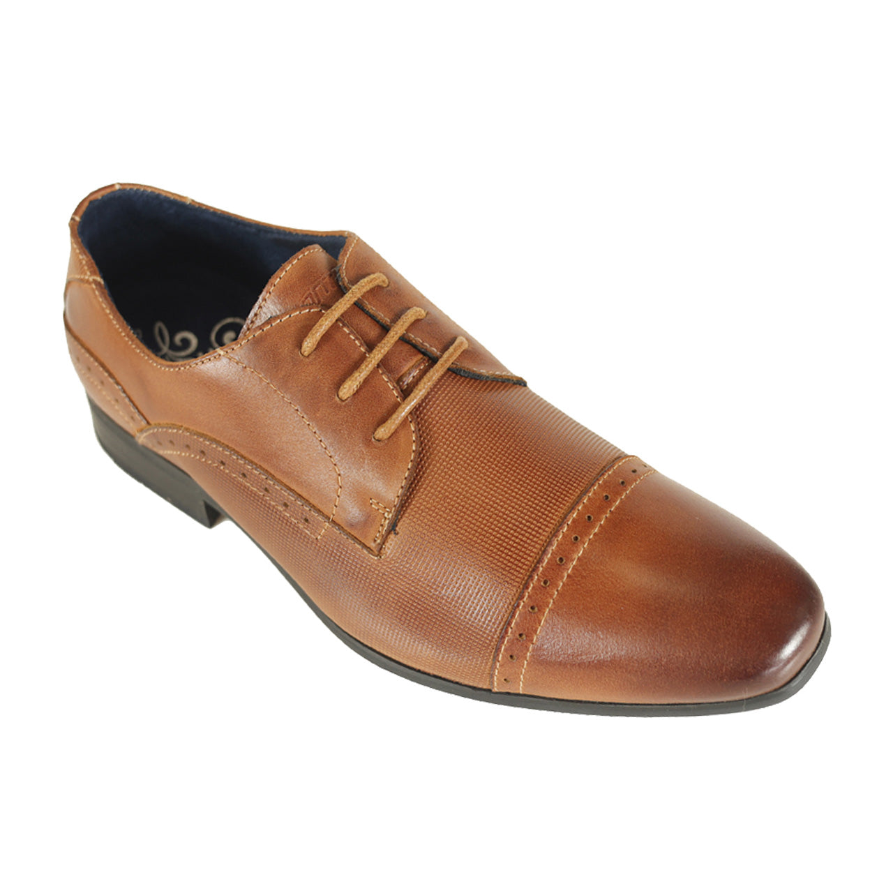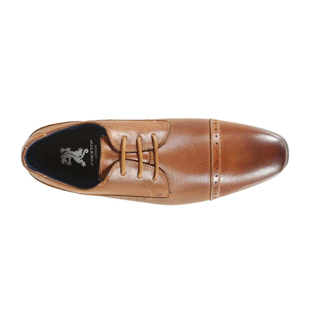 A classic men's toe cap derby shoe from Front, quality leather uppers, a slim line resin sole and a low block heel. The 3-lace closing will keep this formal style secure and the cushioned footbed will provide comfort for long engagements.